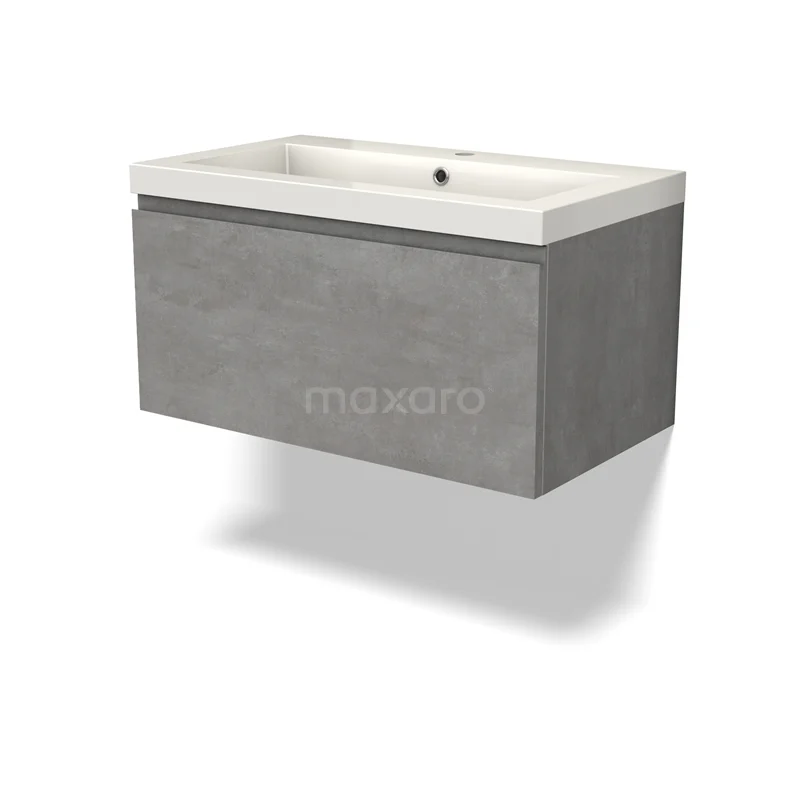 Modulo Waschtische | 80 cm Hellgrauer Beton Grifflos front Mineralguss 1 Schublade