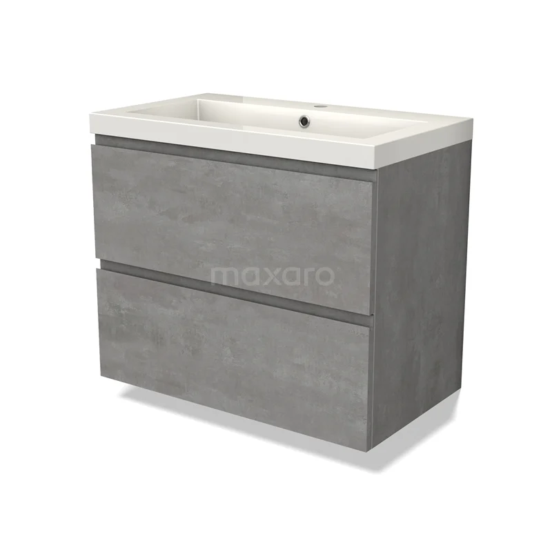 Modulo Waschtische | 80 cm Hellgrauer Beton Grifflos front Mineralguss 2 übereinanderliegende Schubladen