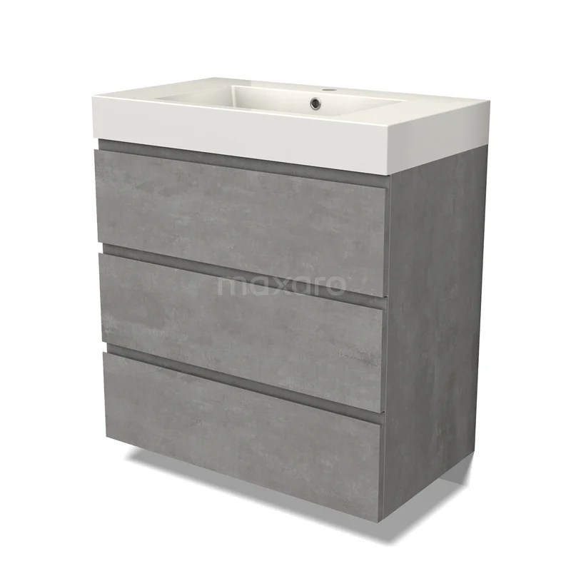 Modulo Waschtische | 80 cm Hellgrauer Beton Grifflos front Mineralguss 3 Schubladen