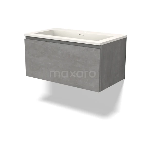 Modulo Waschtische | 80 cm Hellgrauer Beton Grifflos front Solid Surface 1 Schublade