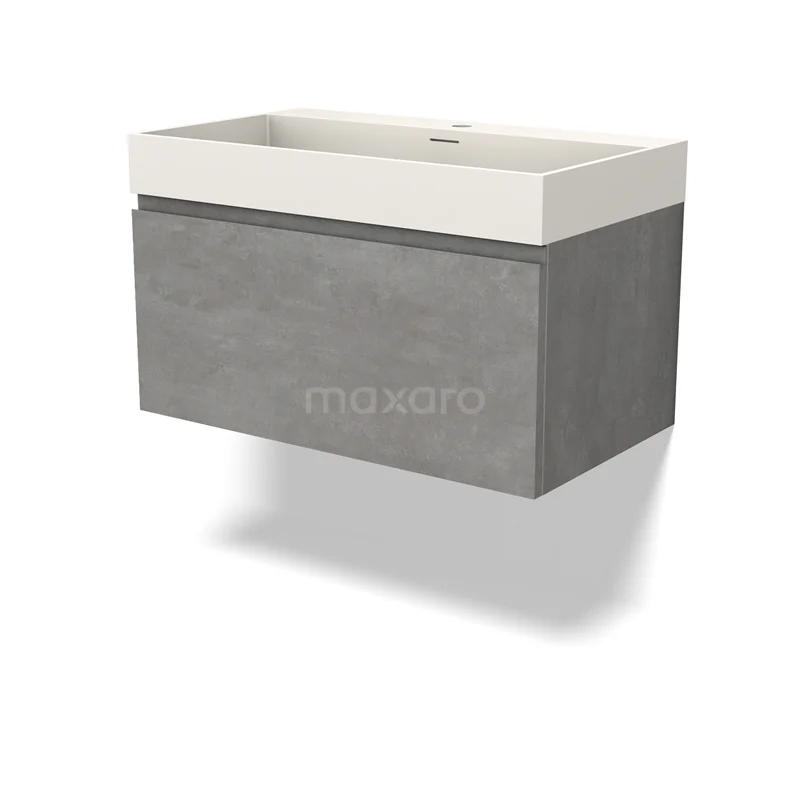 Modulo Waschtische | 80 cm Hellgrauer Beton Grifflos front Solid Surface 1 Schublade