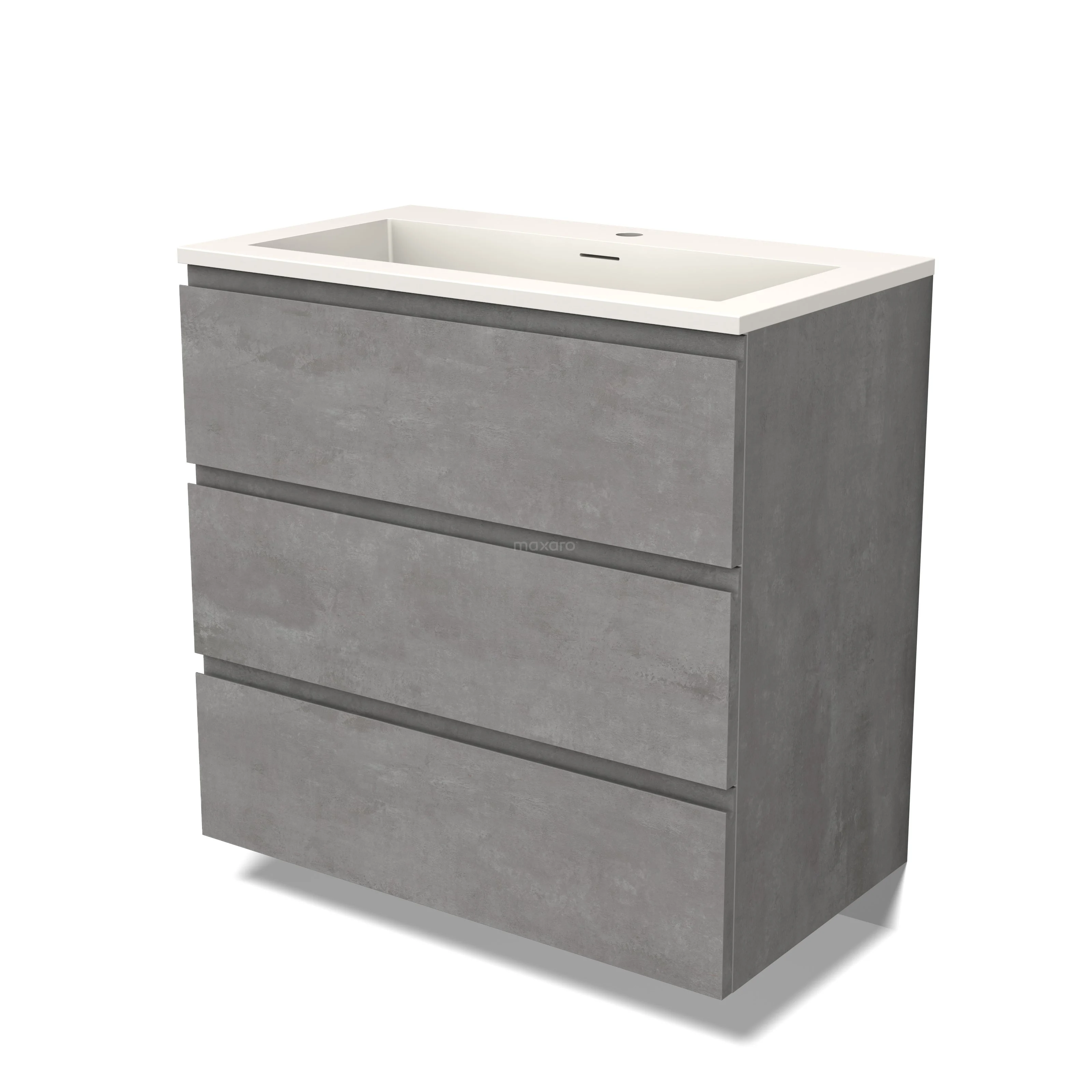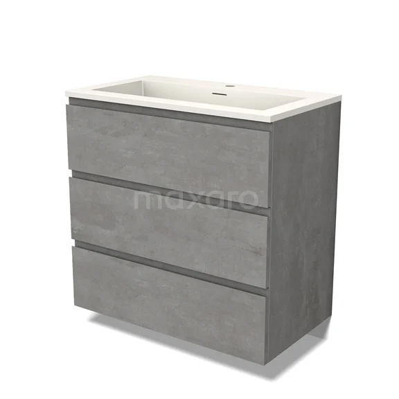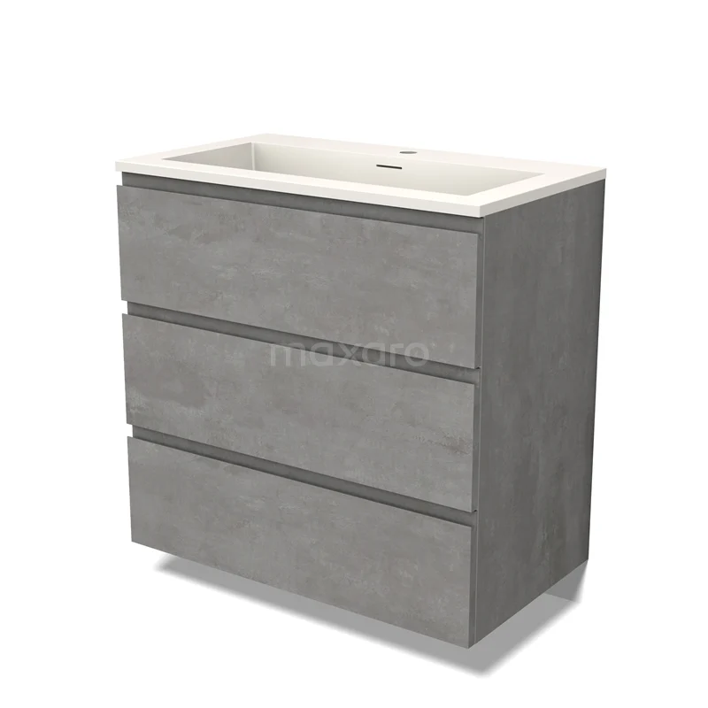 Modulo Waschtische | 80 cm Hellgrauer Beton Grifflos front Solid Surface 3 Schubladen
