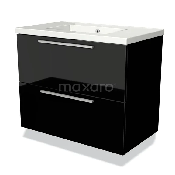 Modulo Waschtische | 80 cm Hochglanz Schwarz Flach front Keramik 2 übereinanderliegende Schubladen