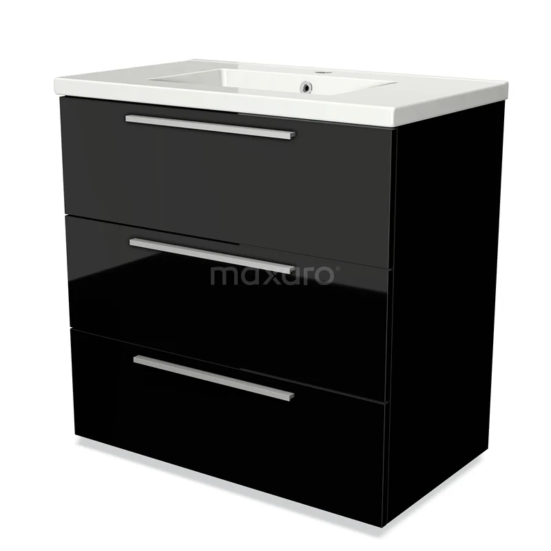 Modulo Waschtische | 80 cm Hochglanz Schwarz Flach front Keramik 3 Schubladen