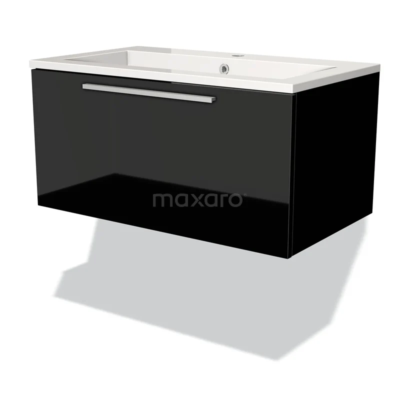 Modulo Waschtische | 80 cm Hochglanz Schwarz Flach front Mineralguss 1 Schublade