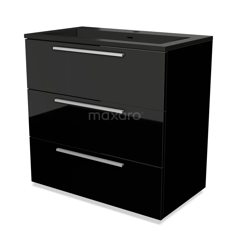 Modulo Waschtische | 80 cm Hochglanz Schwarz Flach front Quarz 3 Schubladen