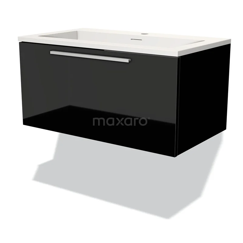 Modulo Waschtische | 80 cm Hochglanz Schwarz Flach front Solid Surface 1 Schublade