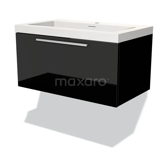 Modulo Waschtische | 80 cm Hochglanz Schwarz Flach front Solid Surface 1 Schublade