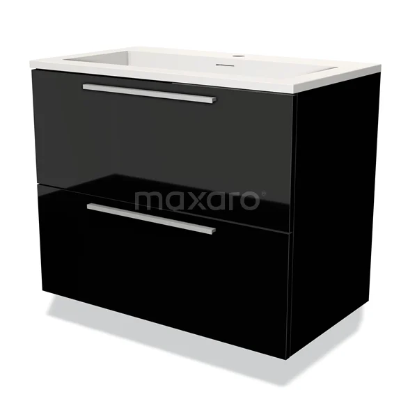 Modulo Waschtische | 80 cm Hochglanz Schwarz Flach front Solid Surface 2 übereinanderliegende Schubladen