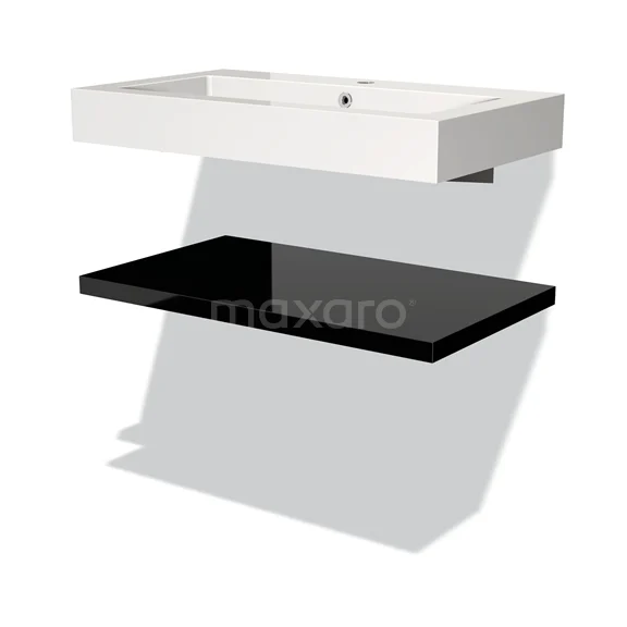 Modulo Waschtische | 80 cm Hochglanz Schwarz front Mineralguss Waschbecken mit Platte