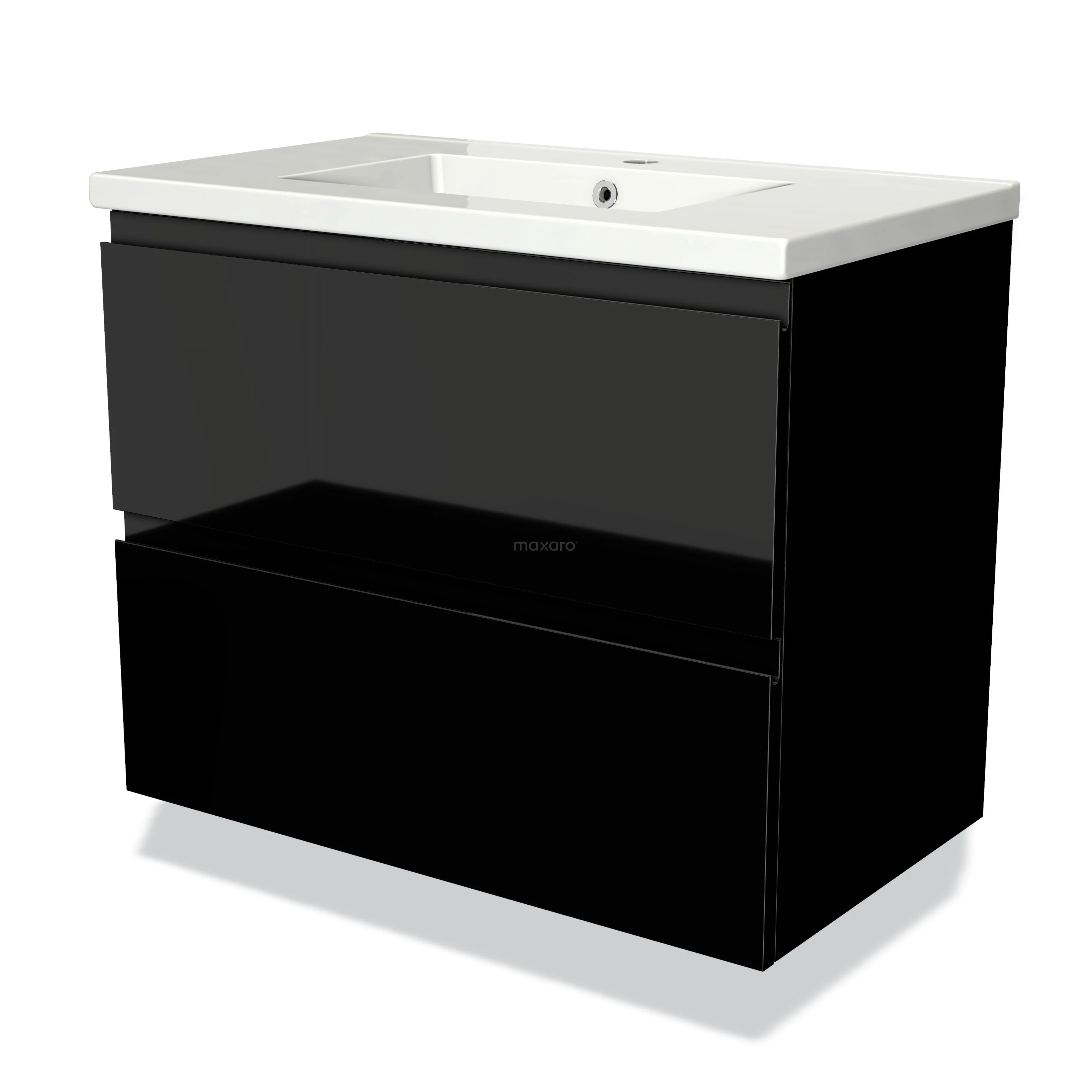 Modulo Waschtische | 80 cm Hochglanz Schwarz Grifflos front Keramik 2 übereinanderliegende Schubladen