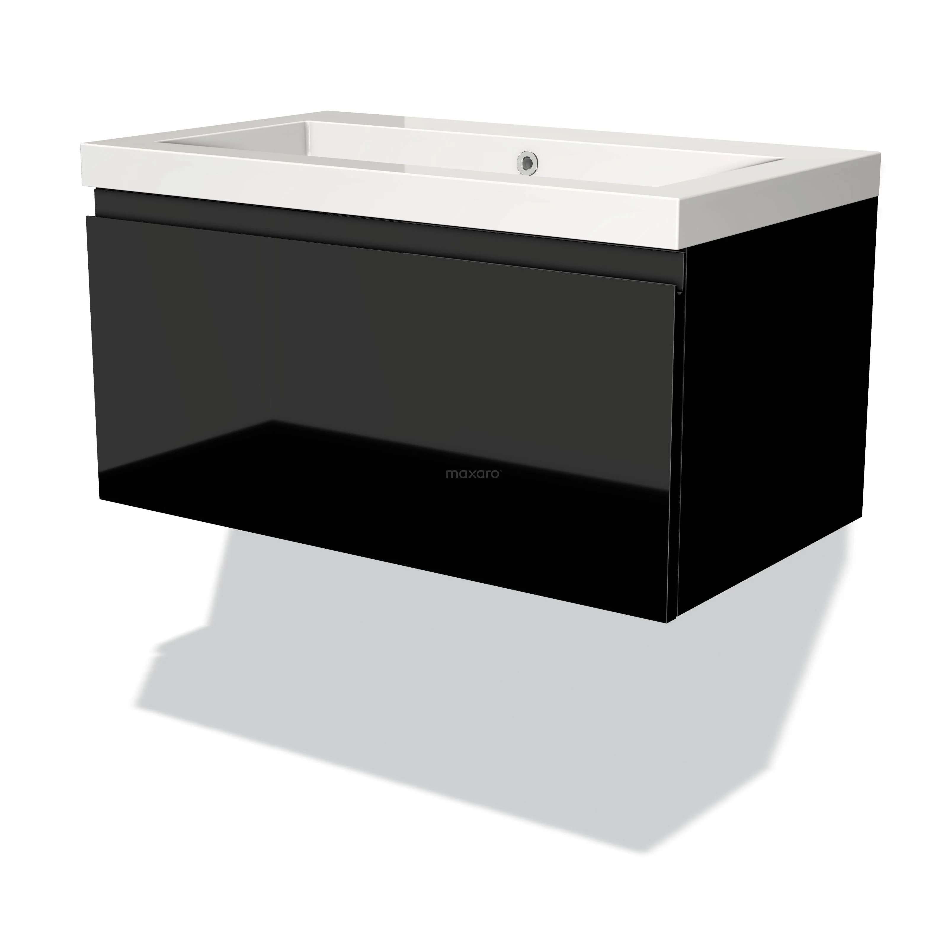 Modulo Waschtische | 80 cm Hochglanz Schwarz Grifflos front Mineralguss 1 Schublade