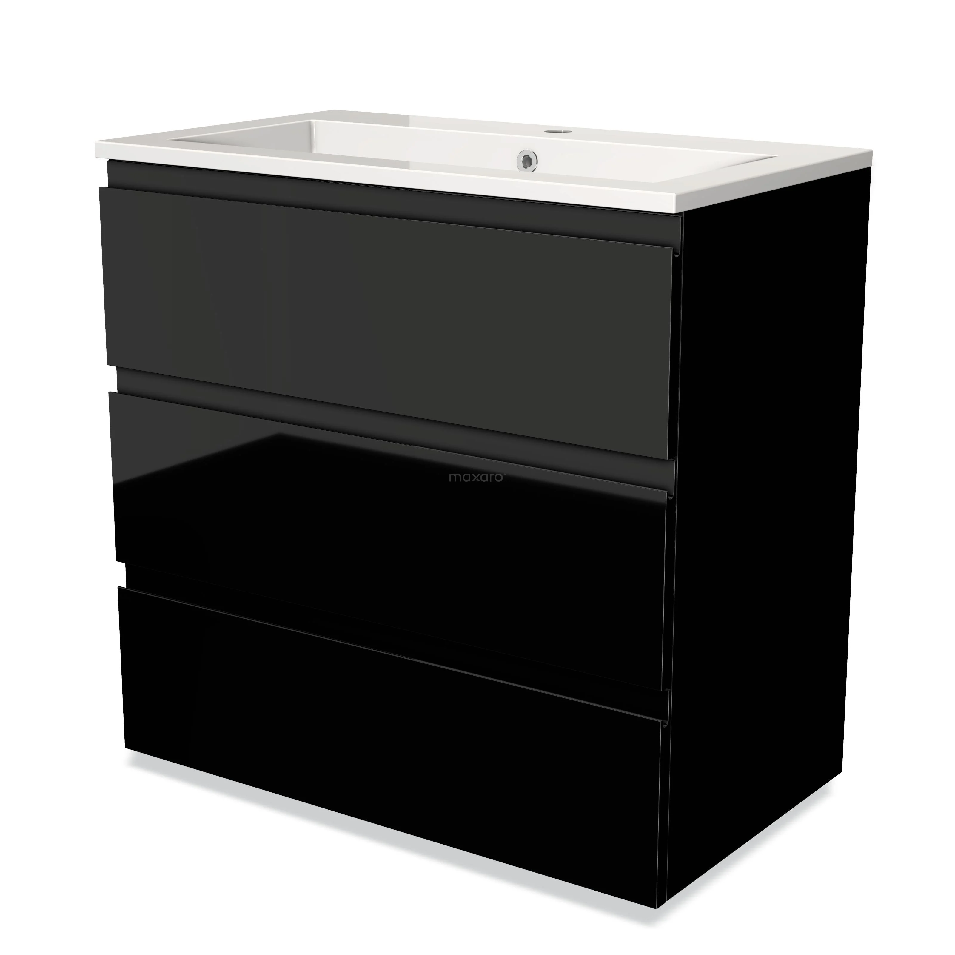 Modulo Waschtische | 80 cm Hochglanz Schwarz Grifflos front Mineralguss 3 Schubladen