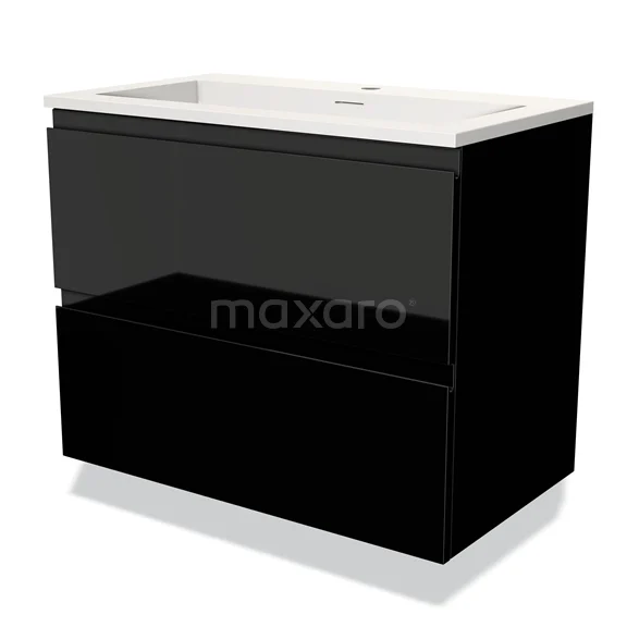 Modulo Waschtische | 80 cm Hochglanz Schwarz Grifflos front Solid Surface 2 übereinanderliegende Schubladen