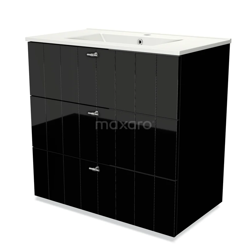 Modulo Waschtische | 80 cm Hochglanz Schwarz Lamelle front Keramik 3 Schubladen