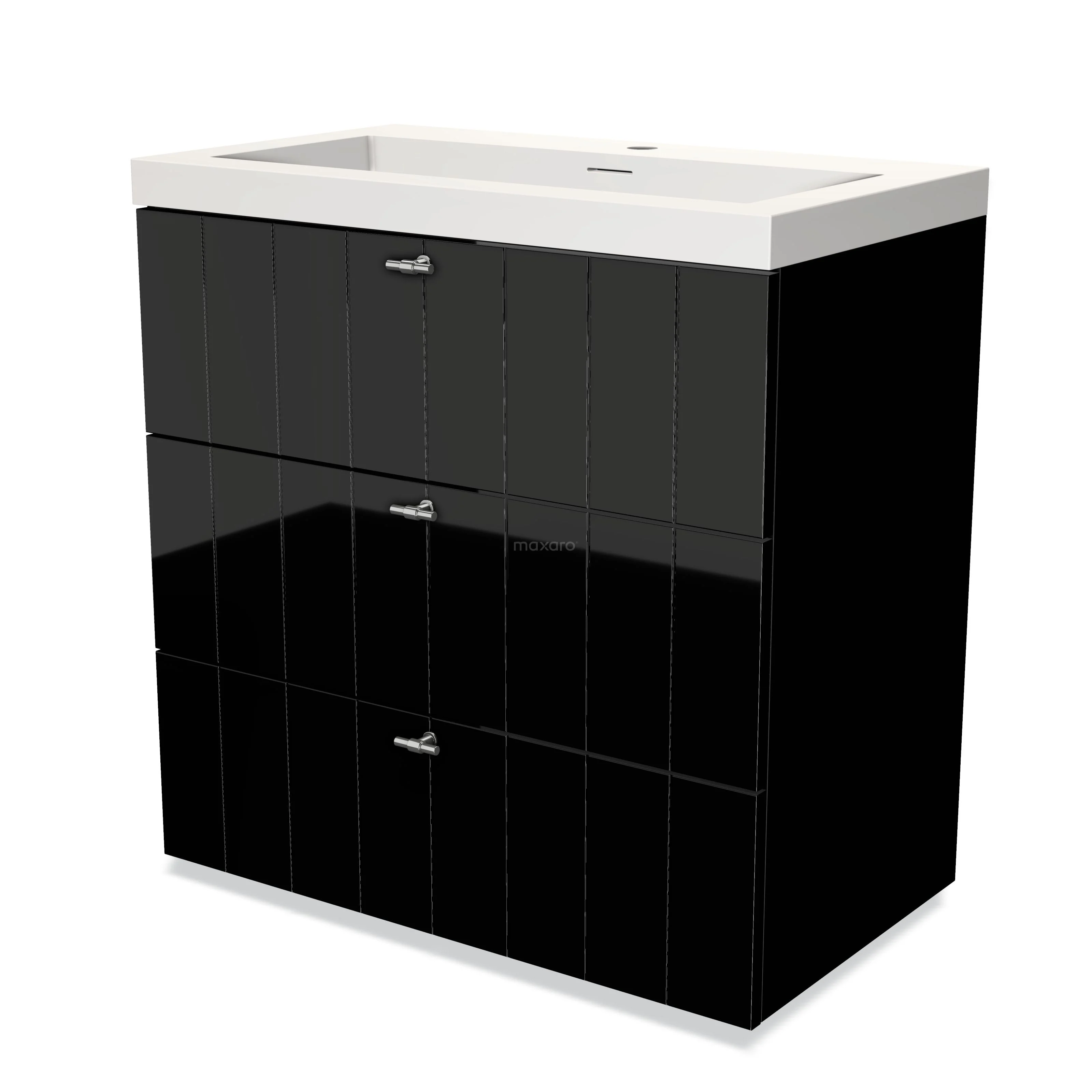 Modulo Waschtische | 80 cm Hochglanz Schwarz Lamelle front Solid Surface 3 Schubladen
