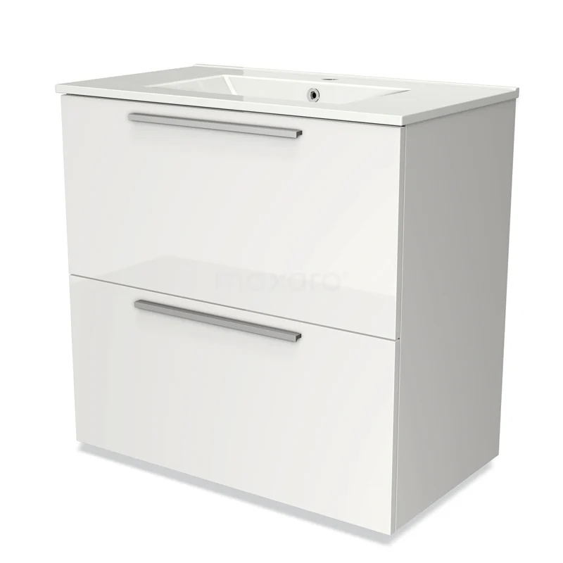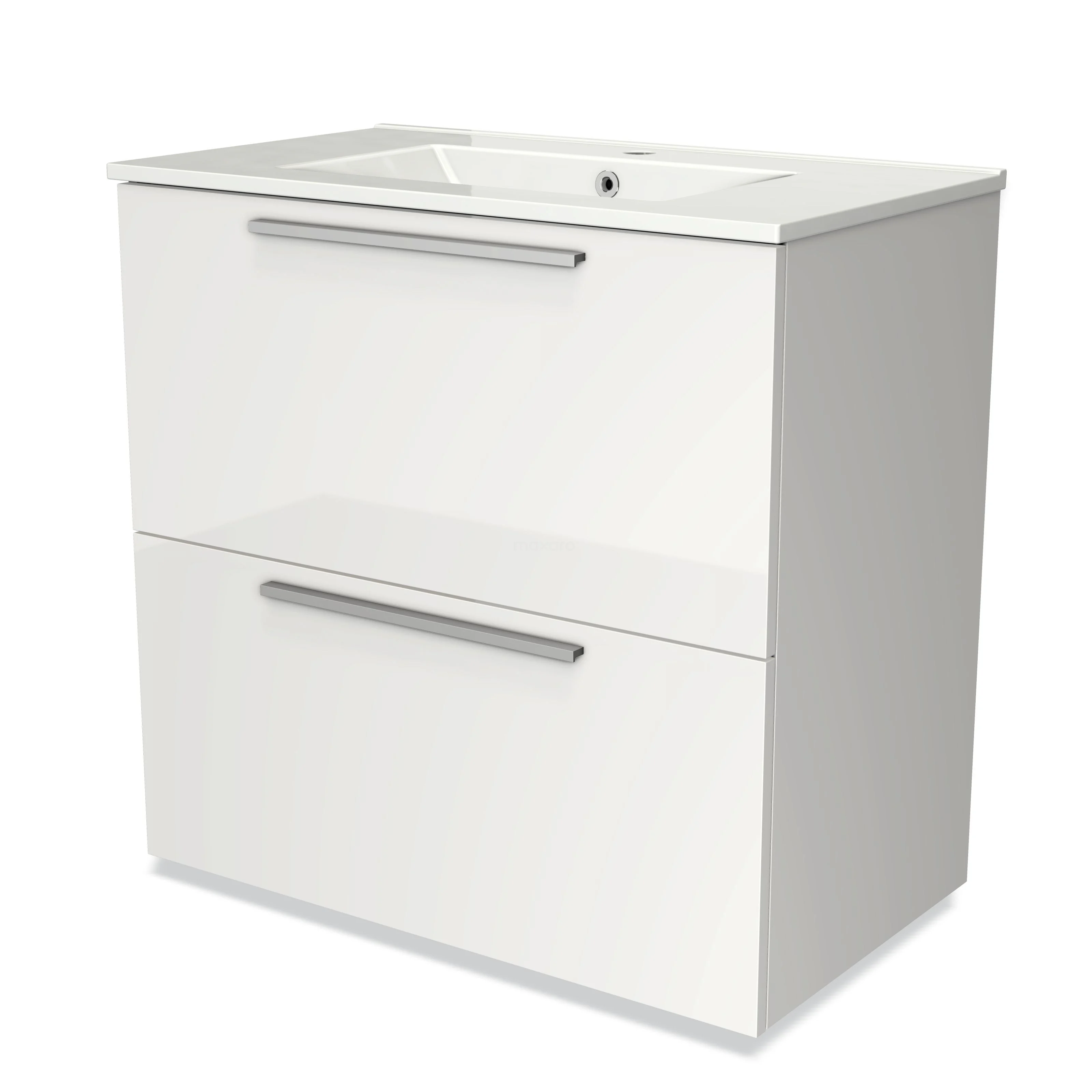 Modulo Waschtische | 80 cm Hochglanz Weiß Flach front Keramik 2 hohe Schubladen übereinanderliegend