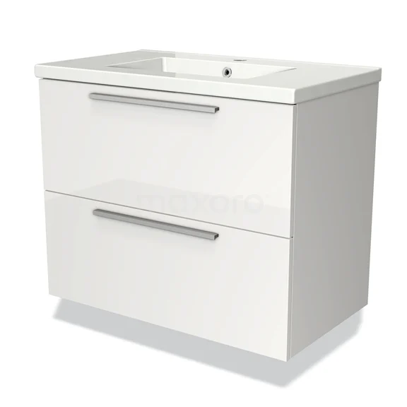 Modulo Waschtische | 80 cm Hochglanz Weiß Flach front Keramik 2 übereinanderliegende Schubladen