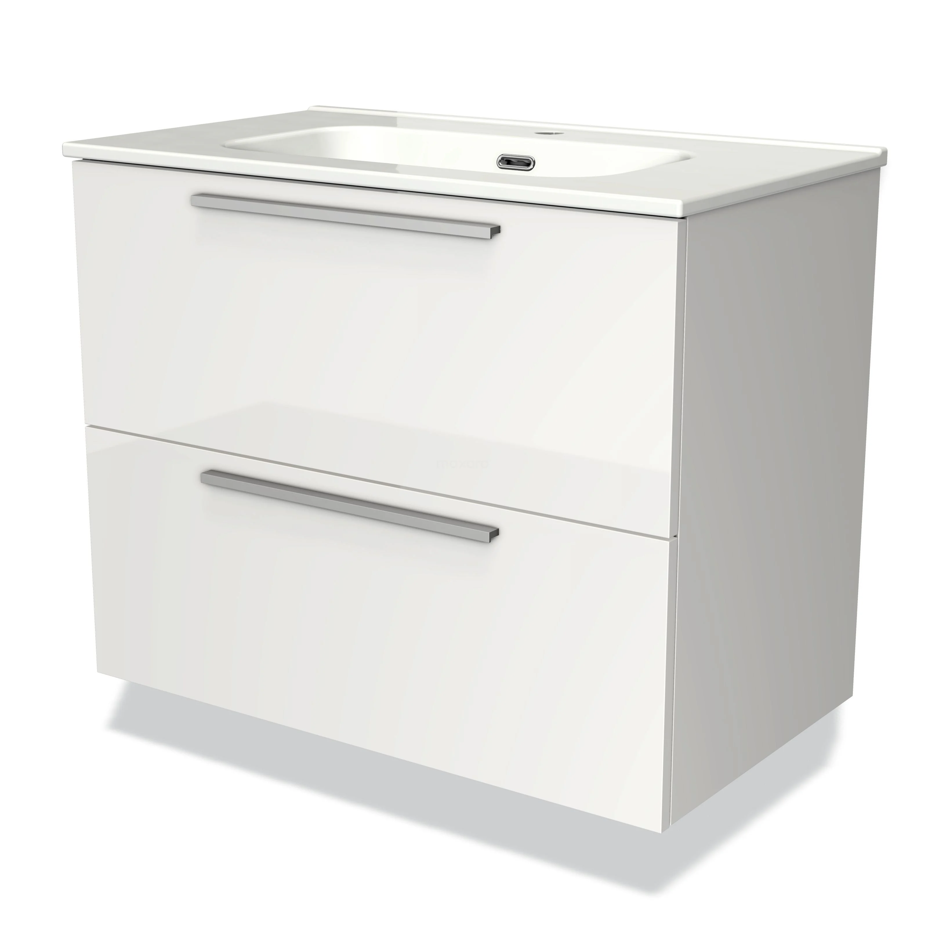 Modulo Waschtische | 80 cm Hochglanz Weiß Flach front Keramik 2 übereinanderliegende Schubladen
