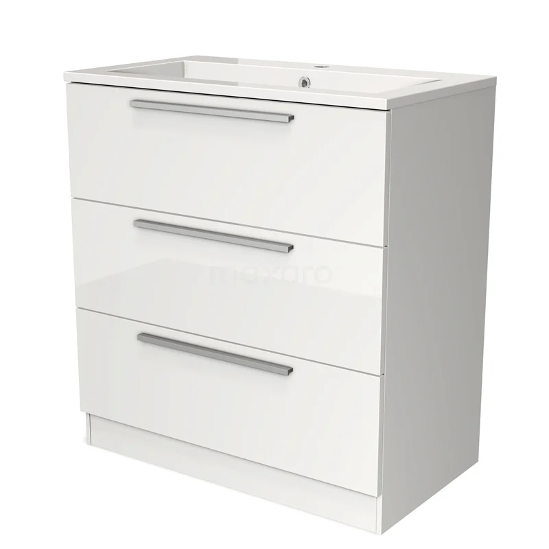 Modulo Waschtische | 80 cm Hochglanz Weiß Flach front Mineralguss 3 stehende Schubladen