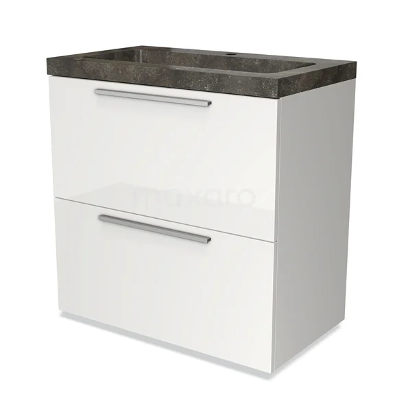 Modulo Waschtische | 80 cm Hochglanz Weiß Flach front Naturstein 2 hohe Schubladen übereinanderliegend