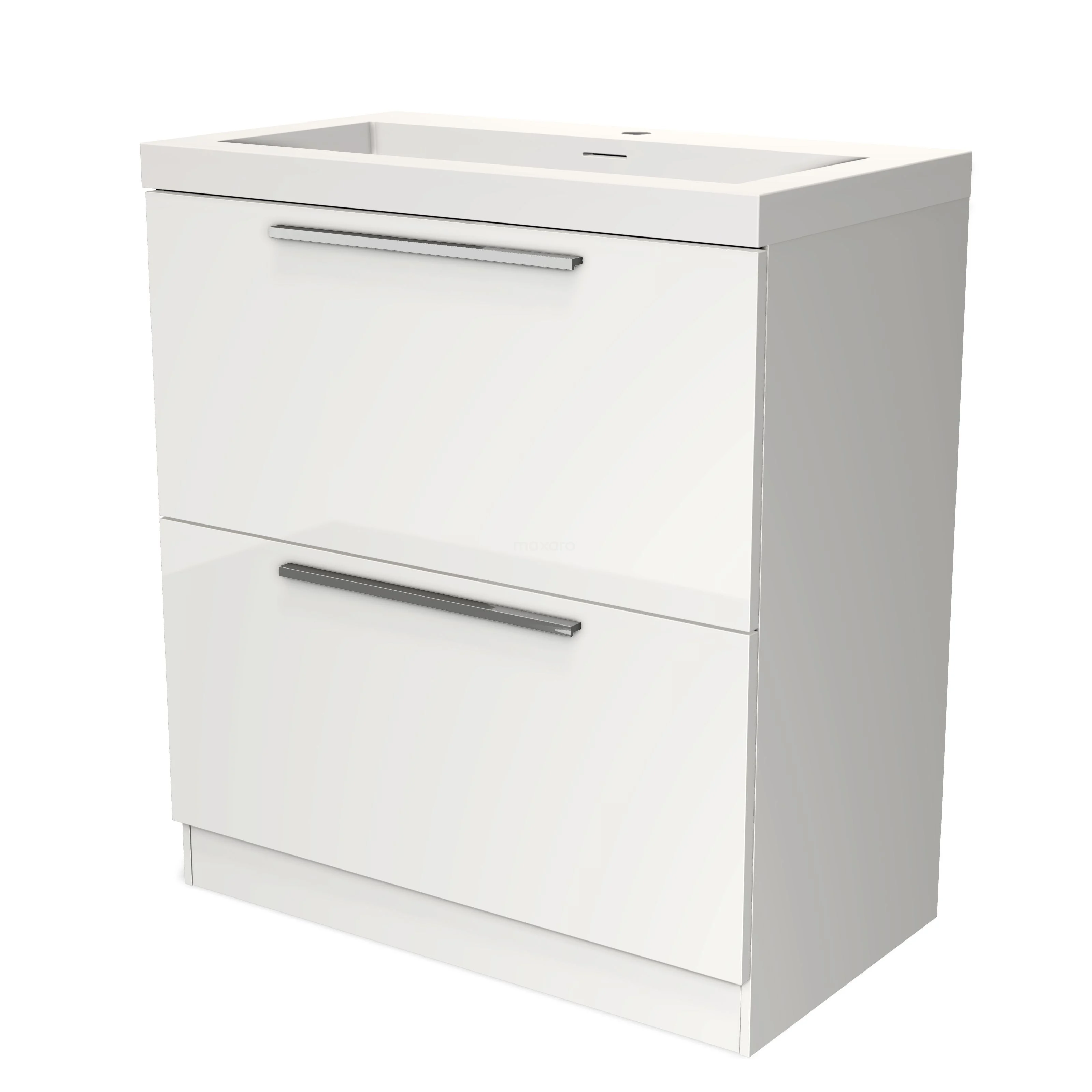 Modulo Waschtische | 80 cm Hochglanz Weiß Flach front Solid Surface 2 hohe Schubladen übereinanderliegend