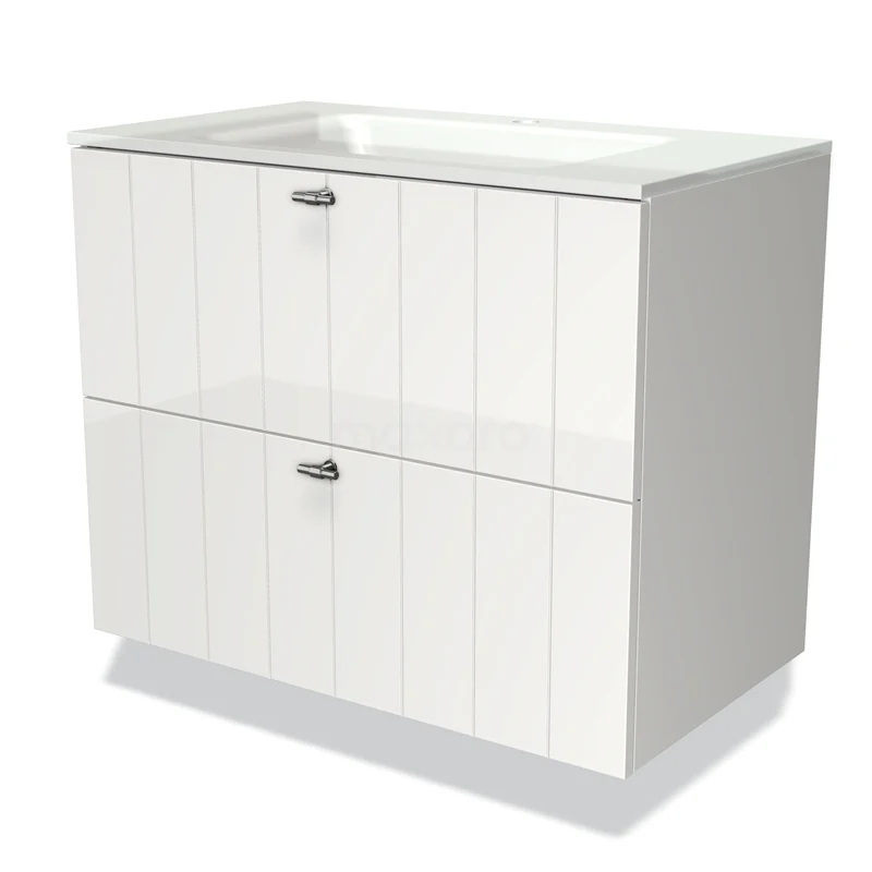 Modulo Waschtische | 80 cm Hochglanz Weiß Lamelle front Glas 2 übereinanderliegende Schubladen