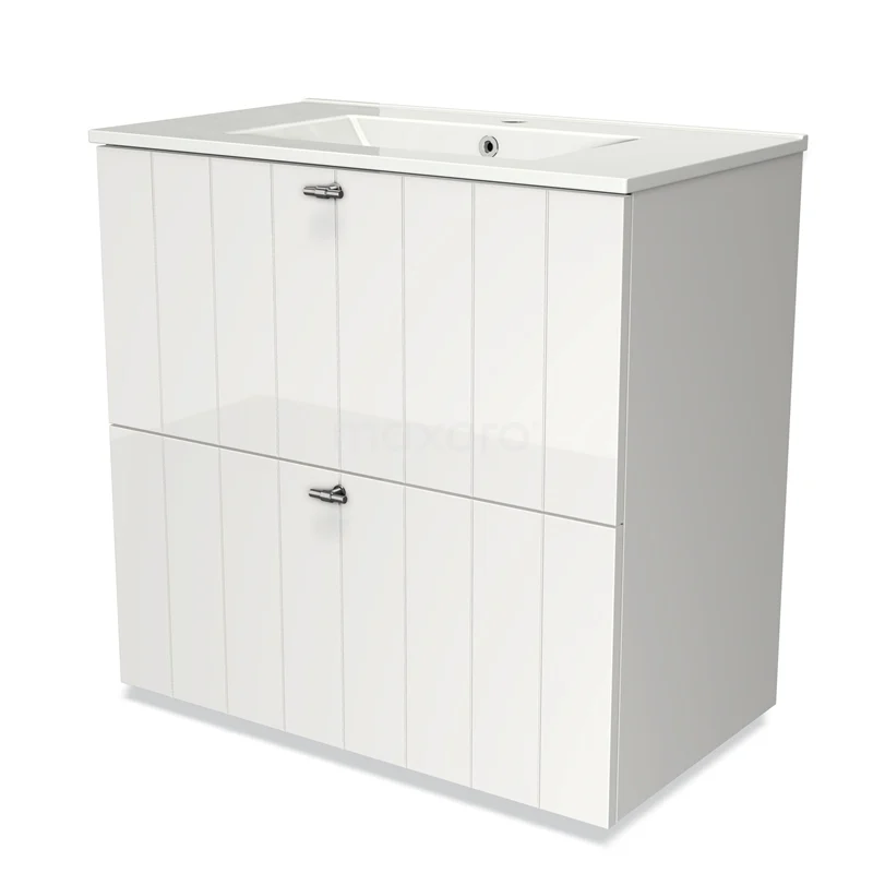 Modulo Waschtische | 80 cm Hochglanz Weiß Lamelle front Keramik 2 hohe Schubladen übereinanderliegend
