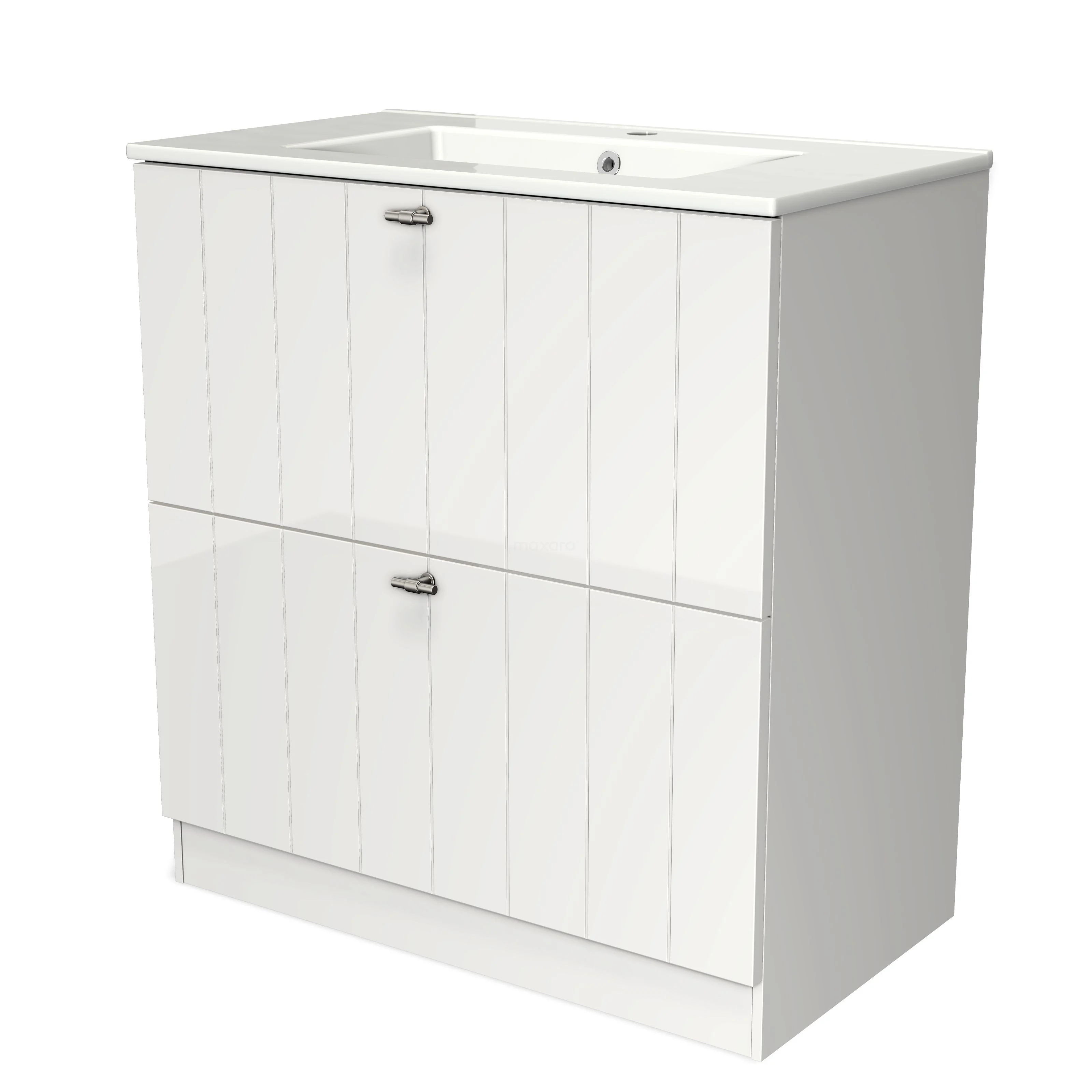 Modulo Waschtische | 80 cm Hochglanz Weiß Lamelle front Keramik 2 hohe Schubladen übereinanderliegend