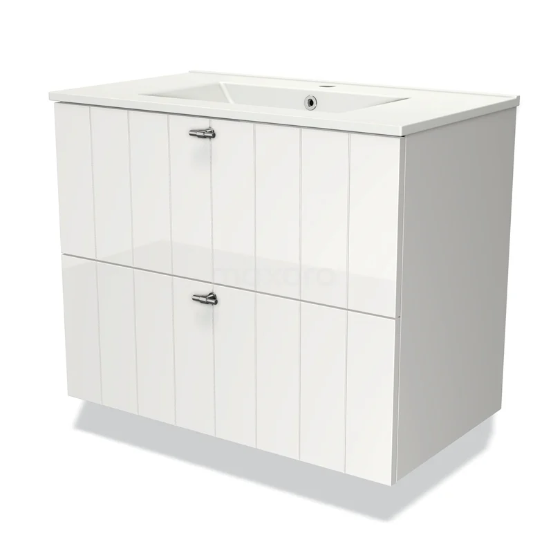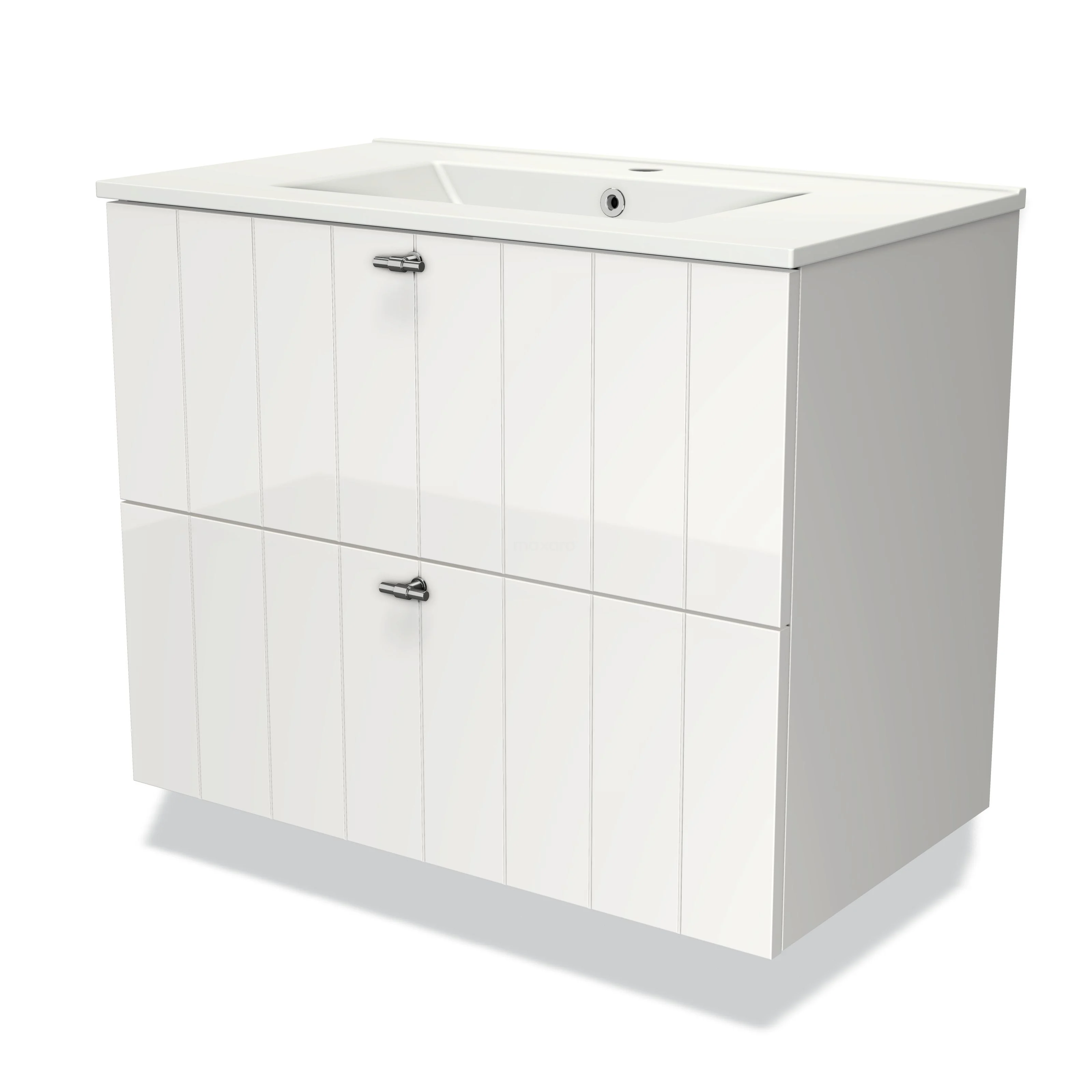 Modulo Waschtische | 80 cm Hochglanz Weiß Lamelle front Keramik 2 übereinanderliegende Schubladen