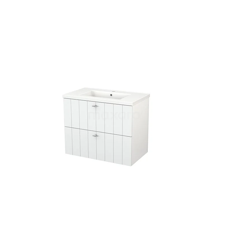 Modulo+ Waschtische | 80 cm Hochglanz Weiß Lamelle front Keramik 2 übereinanderliegende Schubladen