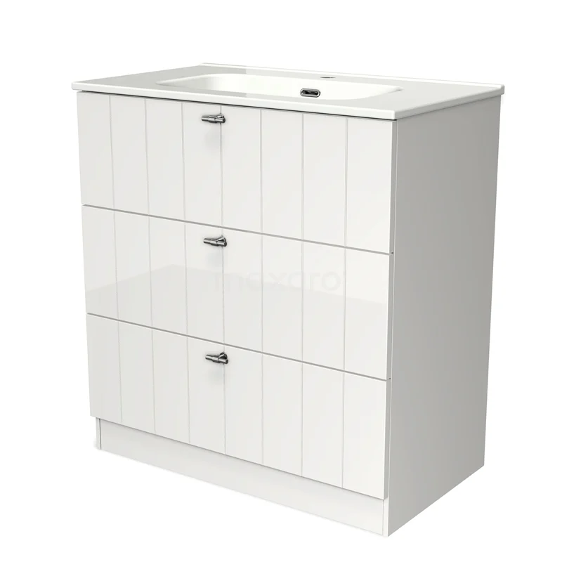 Modulo Waschtische | 80 cm Hochglanz Weiß Lamelle front Keramik 3 stehende Schubladen
