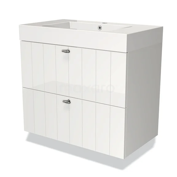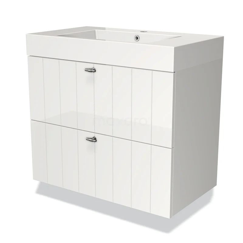 Modulo Waschtische | 80 cm Hochglanz Weiß Lamelle front Mineralguss 2 übereinanderliegende Schubladen