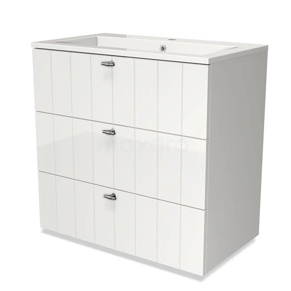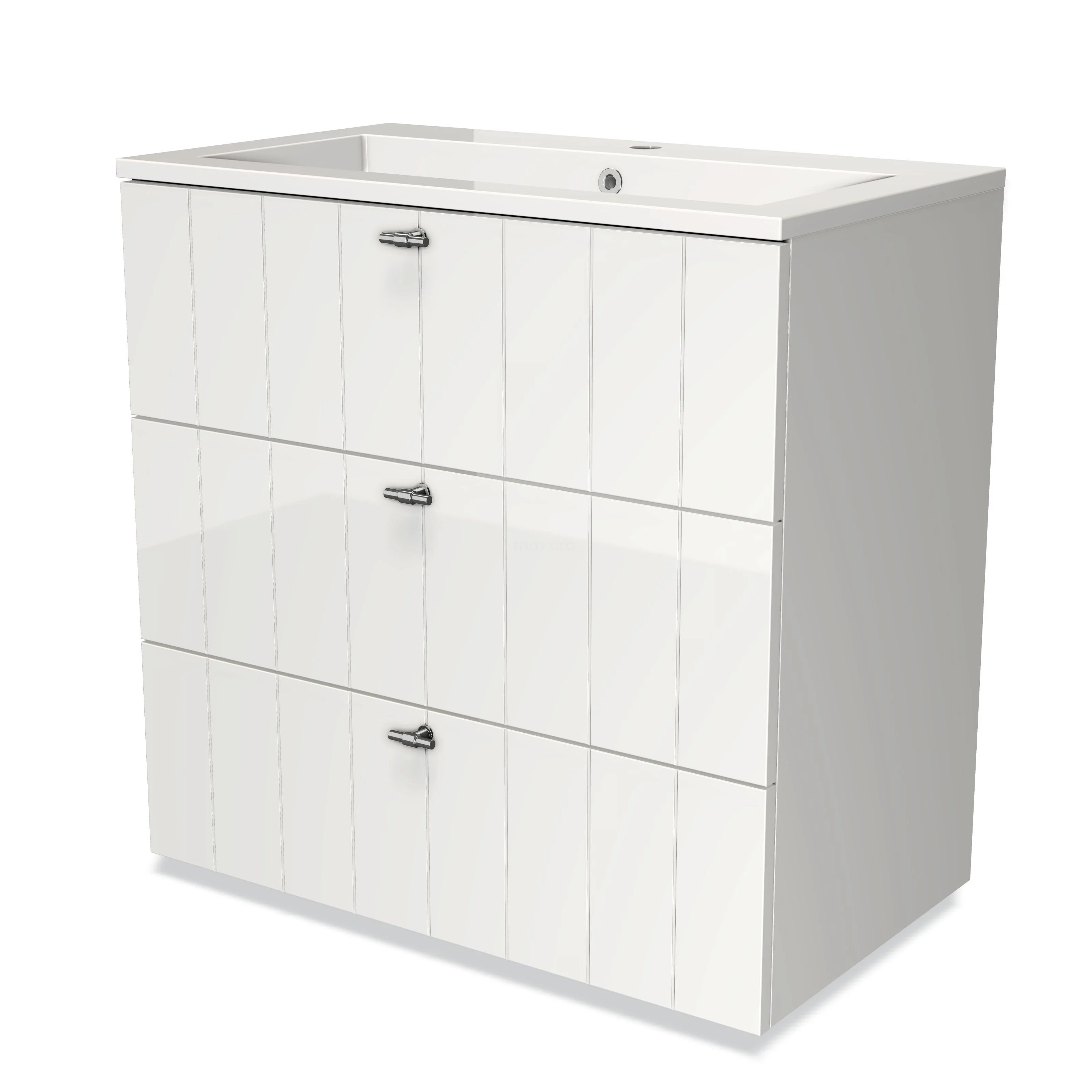 Modulo Waschtische | 80 cm Hochglanz Weiß Lamelle front Mineralguss 3 Schubladen