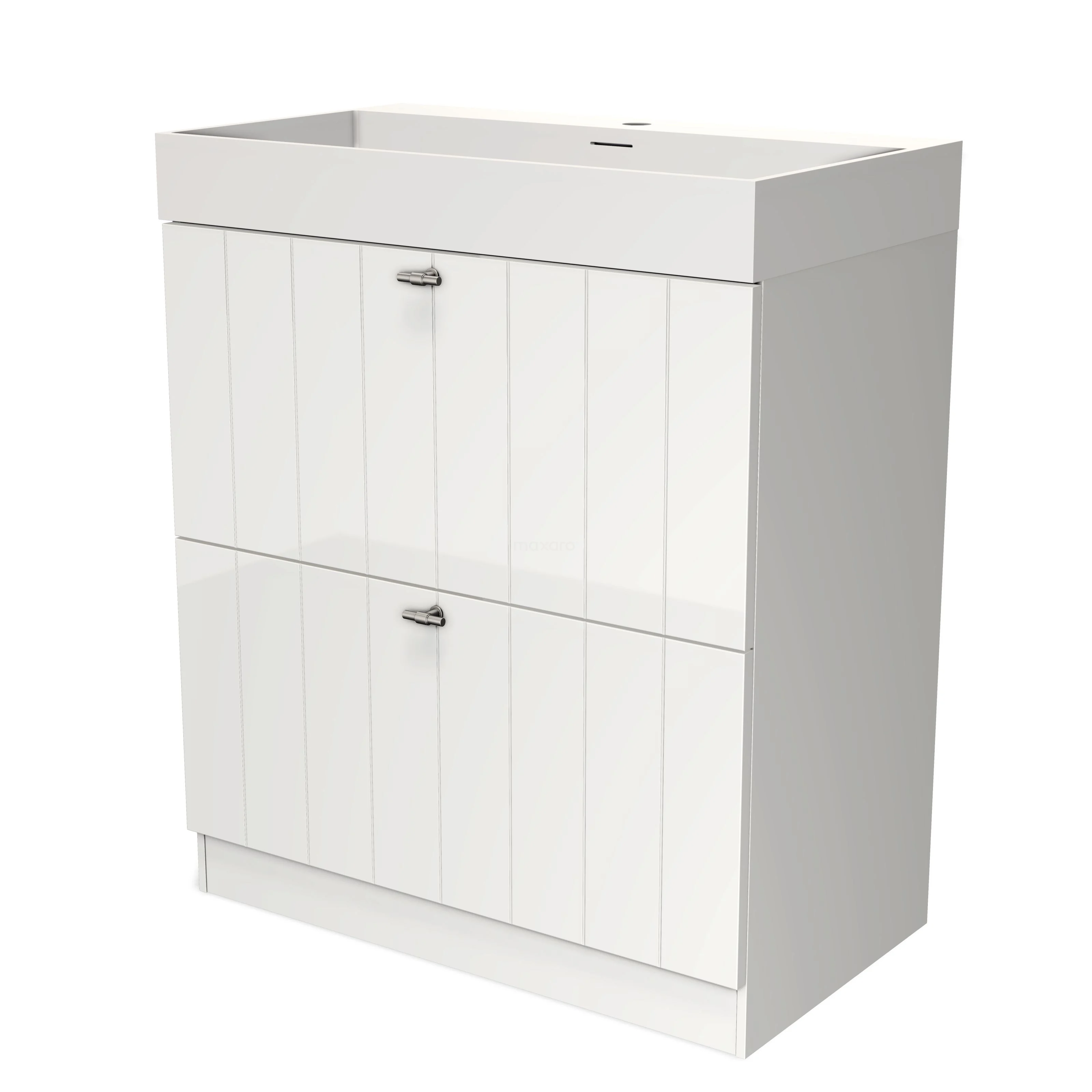 Modulo Waschtische | 80 cm Hochglanz Weiß Lamelle front Solid Surface 2 hohe Schubladen übereinanderliegend