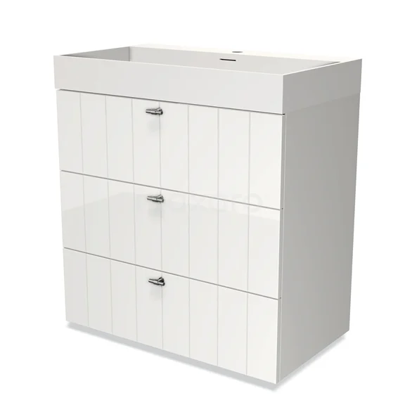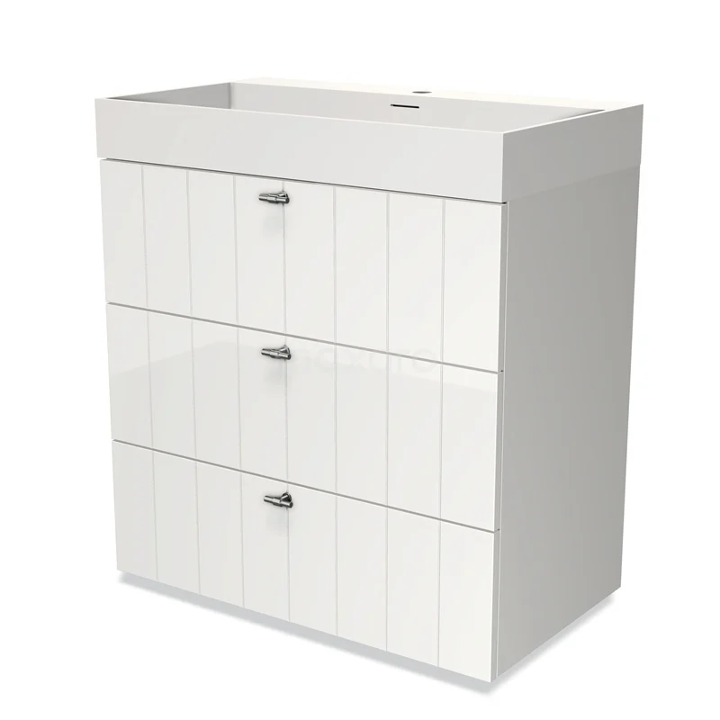 Modulo Waschtische | 80 cm Hochglanz Weiß Lamelle front Solid Surface 3 Schubladen