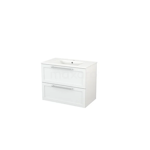 Modulo+ Waschtische | 80 cm Hochglanz Weiß Rahmen front Keramik 2 übereinanderliegende Schubladen