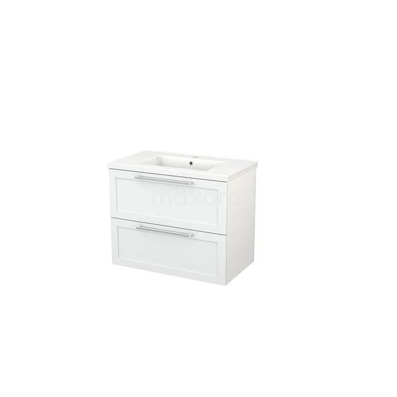 Modulo+ Waschtische | 80 cm Hochglanz Weiß Rahmen front Keramik 2 übereinanderliegende Schubladen