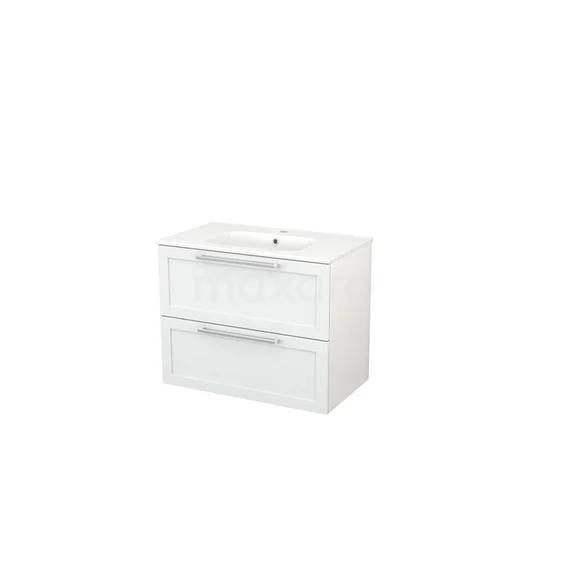 Modulo+ Waschtische | 80 cm Hochglanz Weiß Rahmen front Keramik 2 übereinanderliegende Schubladen