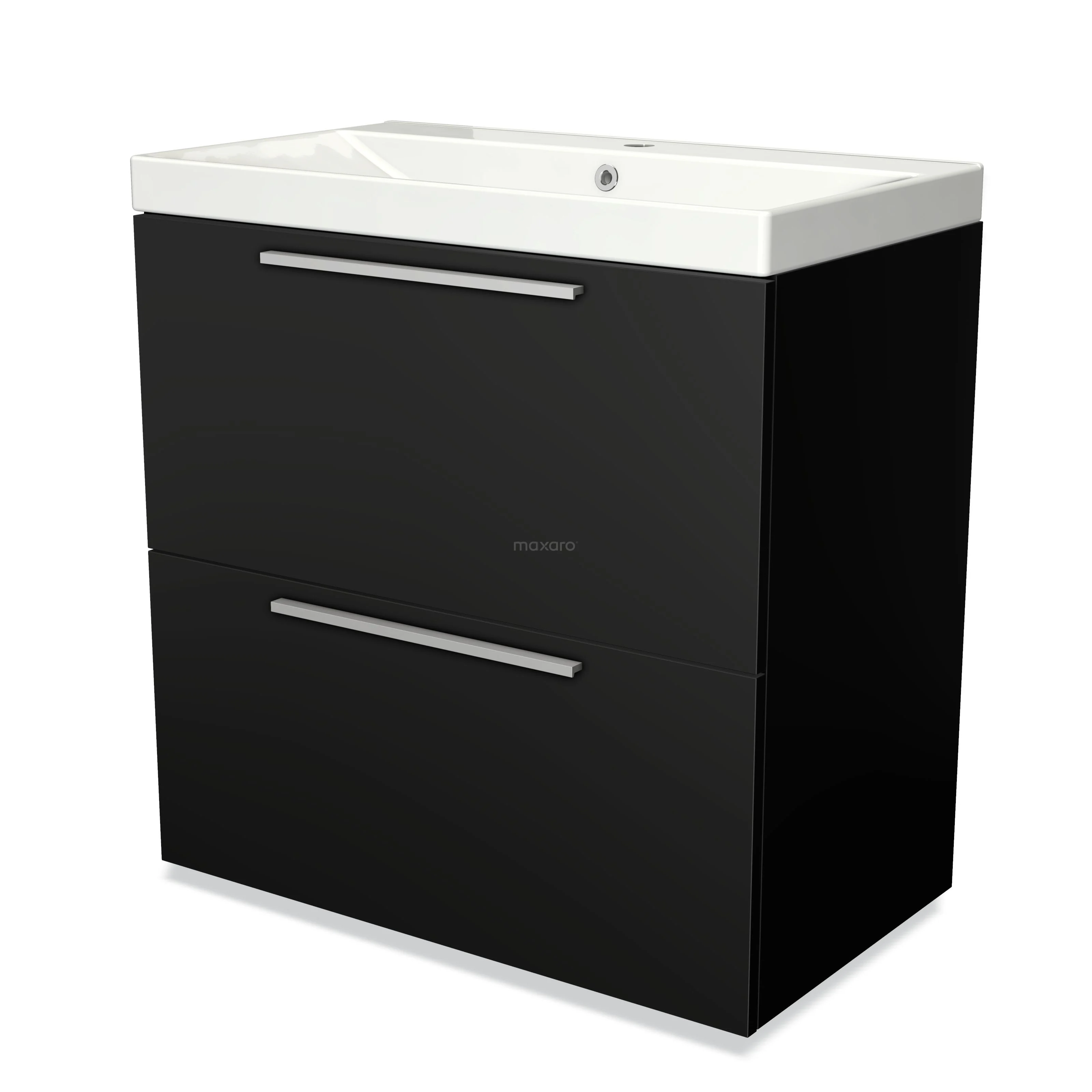 Modulo Waschtische | 80 cm Matt Schwarz Flach front Keramik 2 hohe Schubladen übereinanderliegend