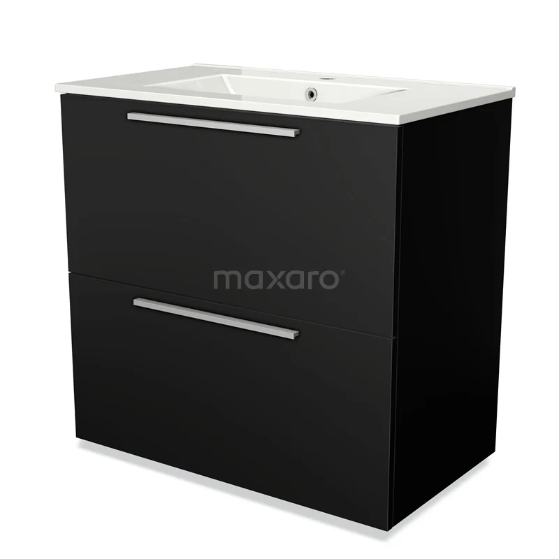 Modulo Waschtische | 80 cm Matt Schwarz Flach front Keramik 2 hohe Schubladen übereinanderliegend