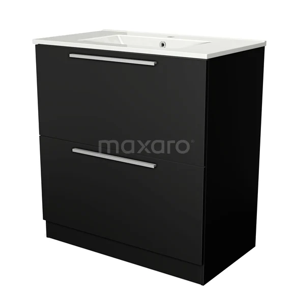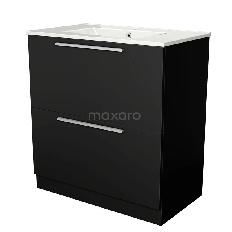 Modulo Waschtische | 80 cm Matt Schwarz Flach front Keramik 2 hohe Schubladen übereinanderliegend