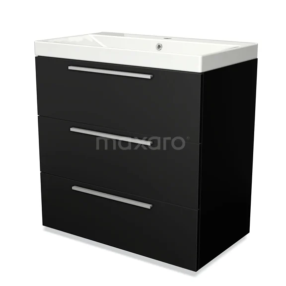 Modulo Waschtische | 80 cm Matt Schwarz Flach front Keramik 3 Schubladen