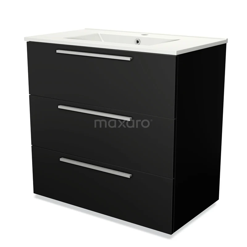 Modulo Waschtische | 80 cm Matt Schwarz Flach front Keramik 3 Schubladen