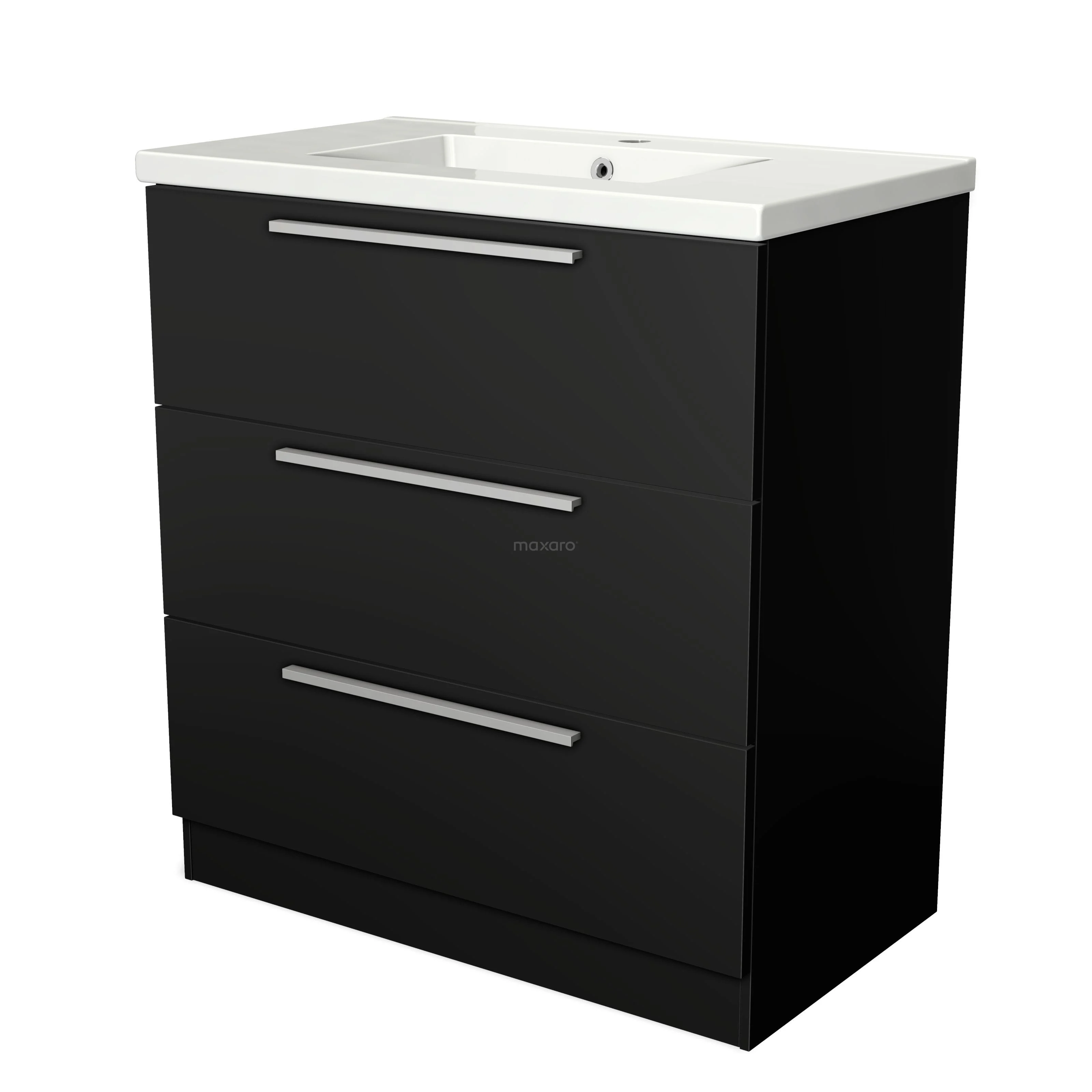 Modulo Waschtische | 80 cm Matt Schwarz Flach front Keramik 3 stehende Schubladen