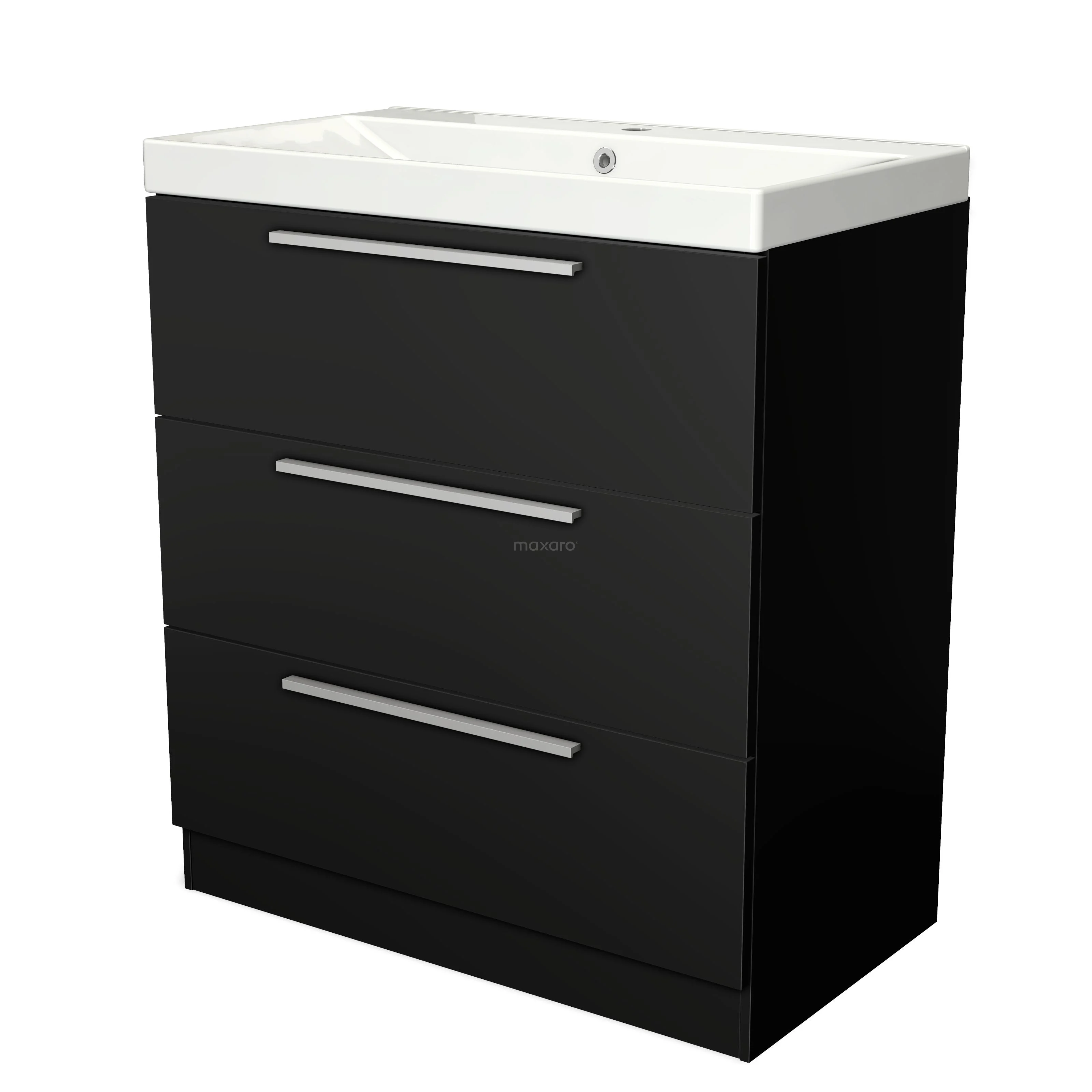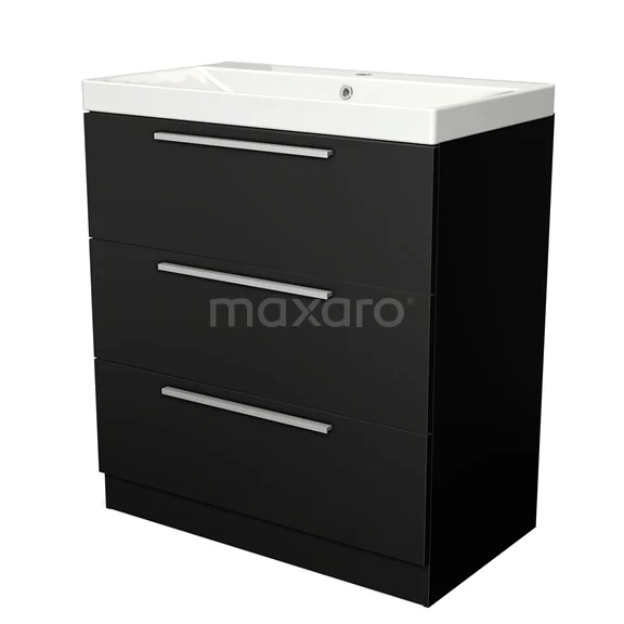 Modulo Waschtische | 80 cm Matt Schwarz Flach front Keramik 3 stehende Schubladen