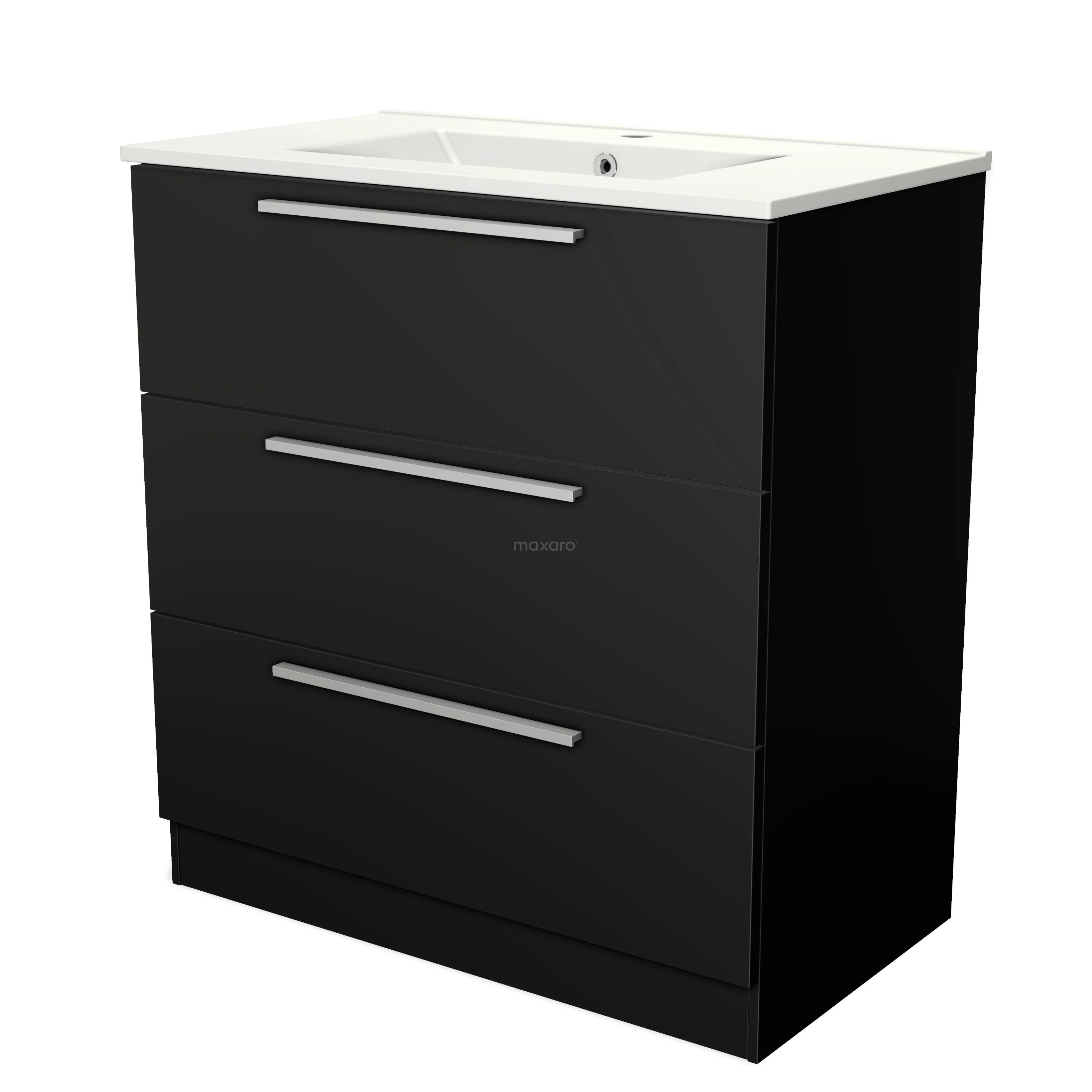 Modulo Waschtische | 80 cm Matt Schwarz Flach front Keramik 3 stehende Schubladen