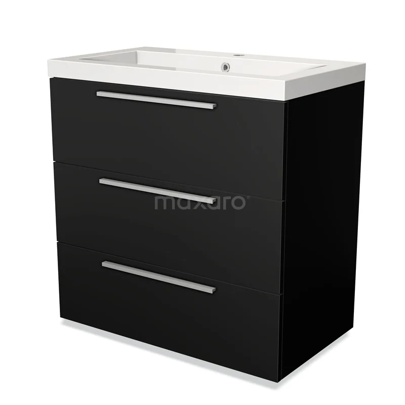 Modulo Waschtische | 80 cm Matt Schwarz Flach front Mineralguss 3 Schubladen