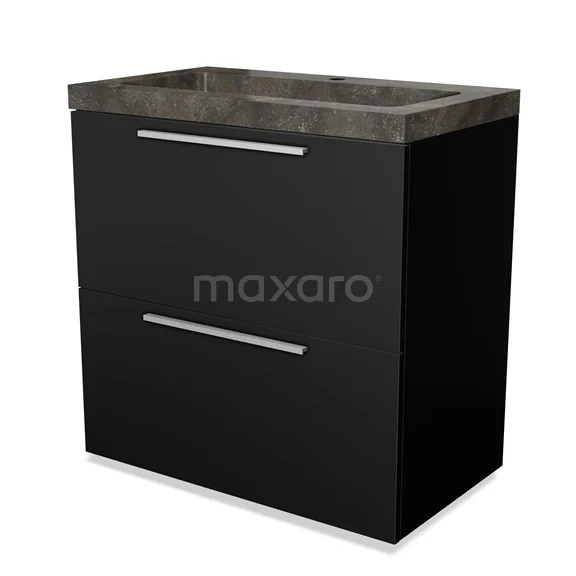 Modulo Waschtische | 80 cm Matt Schwarz Flach front Naturstein 2 hohe Schubladen übereinanderliegend