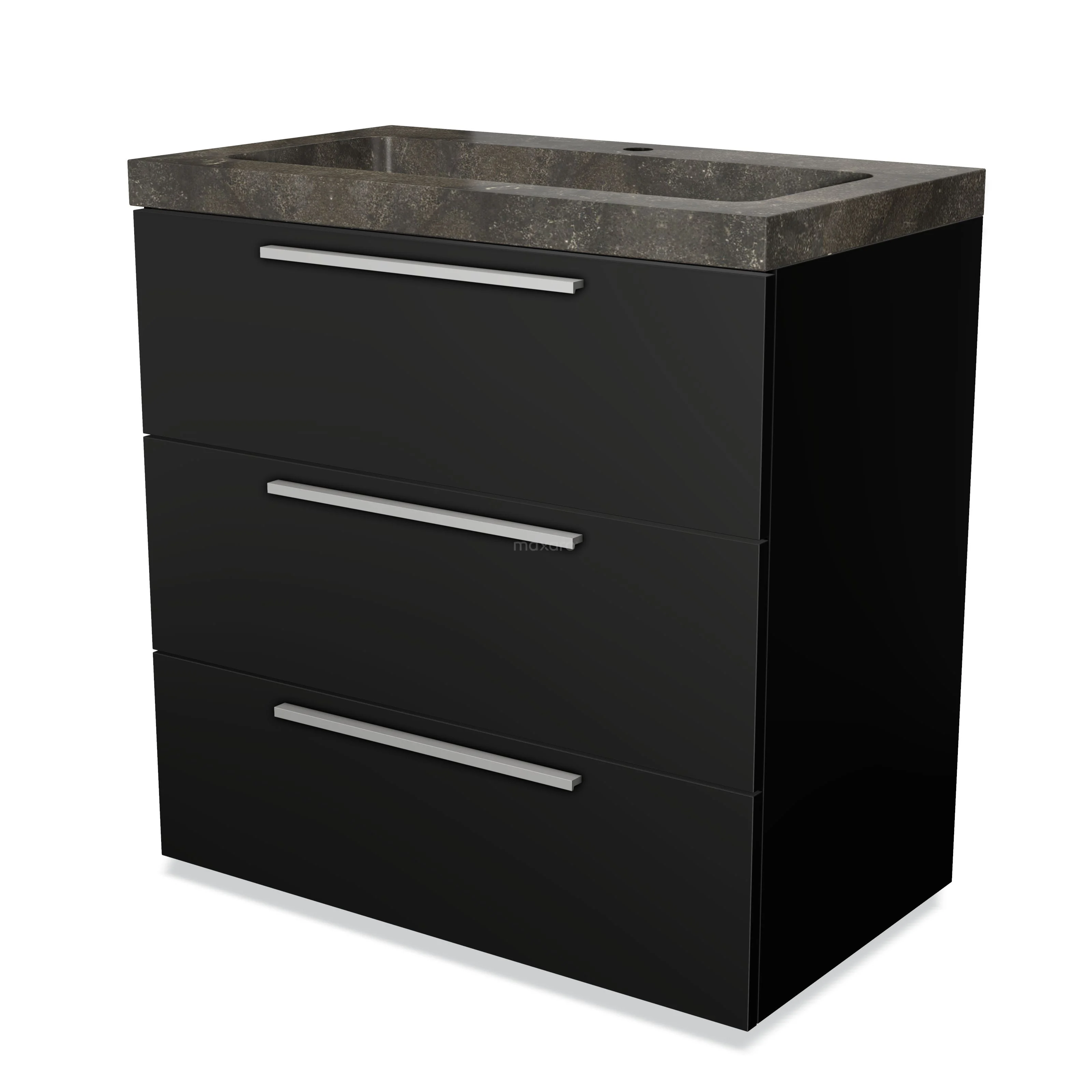 Modulo Waschtische | 80 cm Matt Schwarz Flach front Naturstein 3 Schubladen